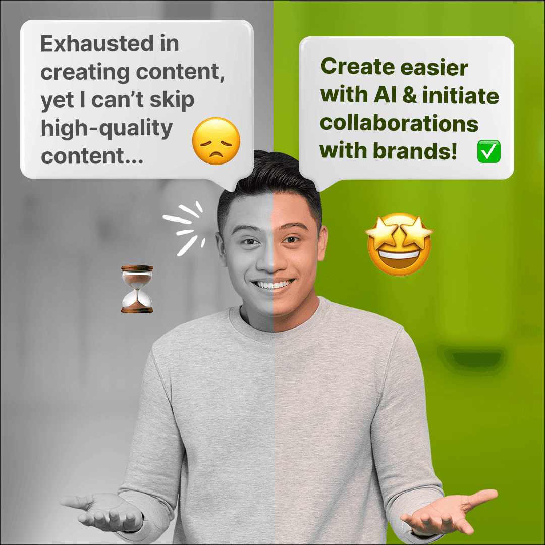 Yoyo loves creating content, but making fast-paced videos and step-by-step guides is taking too much time and energy. He needs better tools to make make step by step content. Yoyo also wants more options to work with brands that match his style and audience, so his work feels more fun and authentic.